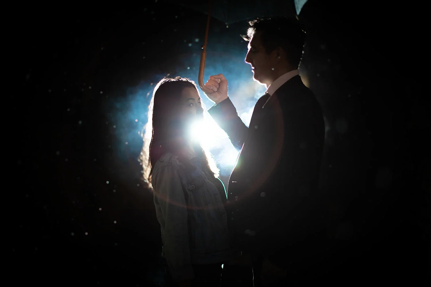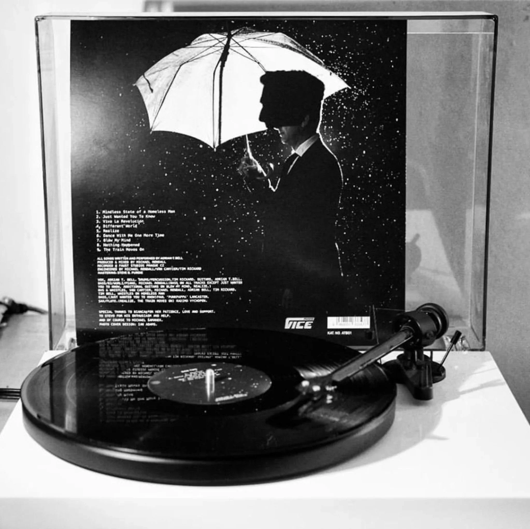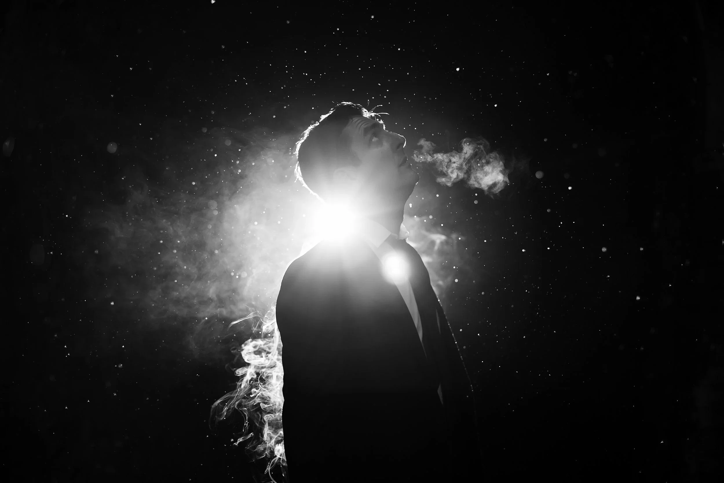 The setup was deliberately modest. Ambient natural light. Long exposures catching raindrops mid-air. No post production. Ian wanted the mood to emerge organically and it did. Darkness and light in tension. Negative space doing the heavy lifting. Each frame built around the balance between void and substance, between what's visible and what's implied.