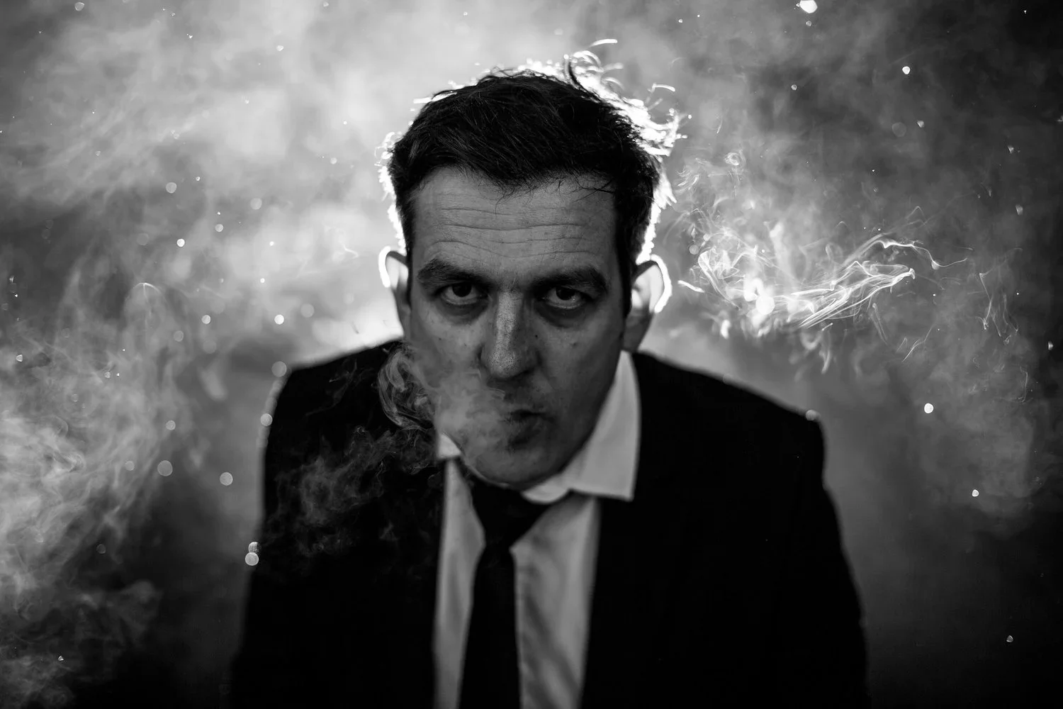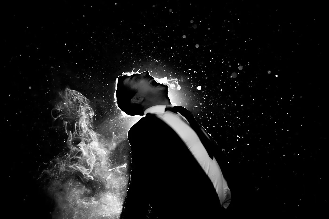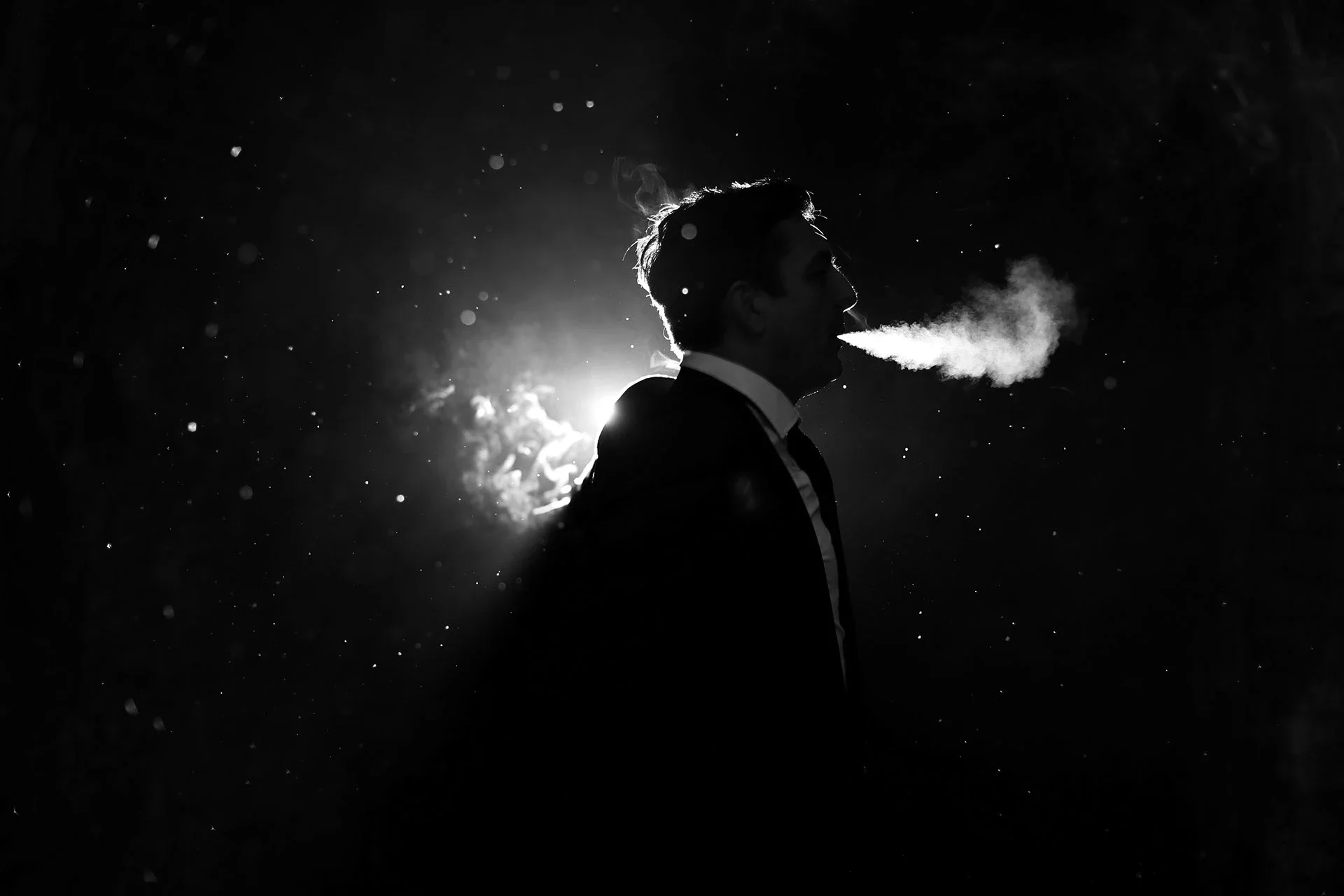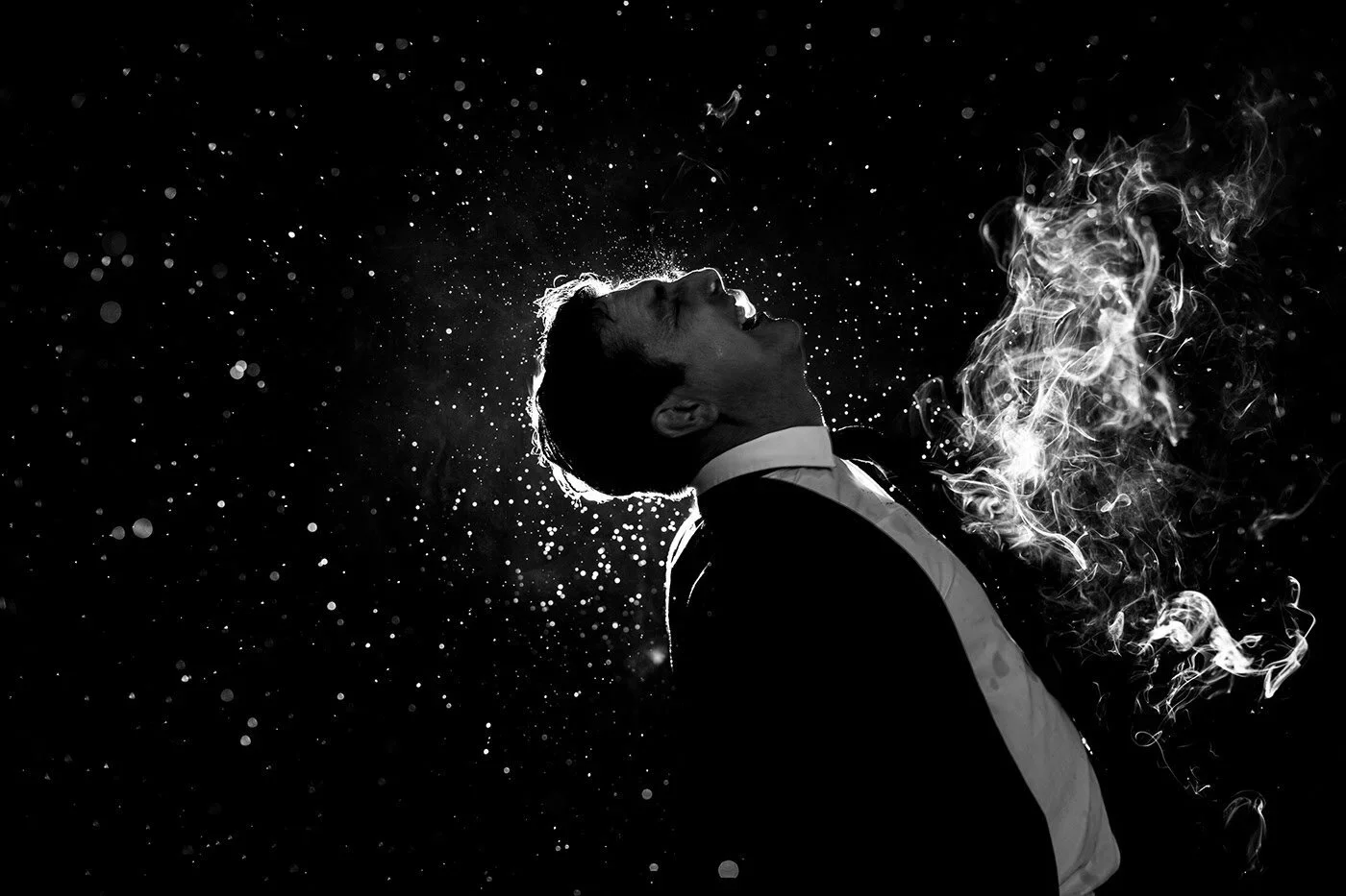The setup was deliberately modest. Ambient natural light. Long exposures catching raindrops mid-air. No post production. Ian wanted the mood to emerge organically and it did. Darkness and light in tension. Negative space doing the heavy lifting. Each frame built around the balance between void and substance, between what's visible and what's implied.